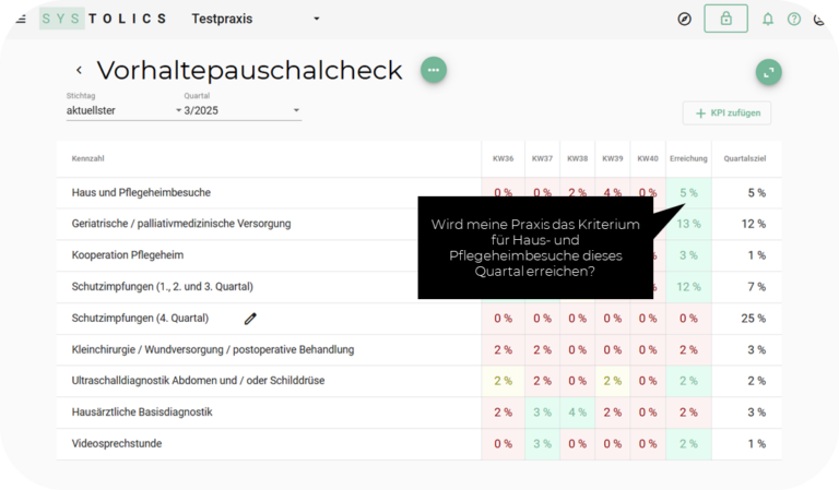 Da die Erfüllung der Zuschlagskriterien quartalsweise geprüft wird, ist eine kontinuierliche Datenauswertung entscheidend. Schwankungen – etwa bei Impfquoten – können so rechtzeitig erkannt und gezielt ausgeglichen werden.